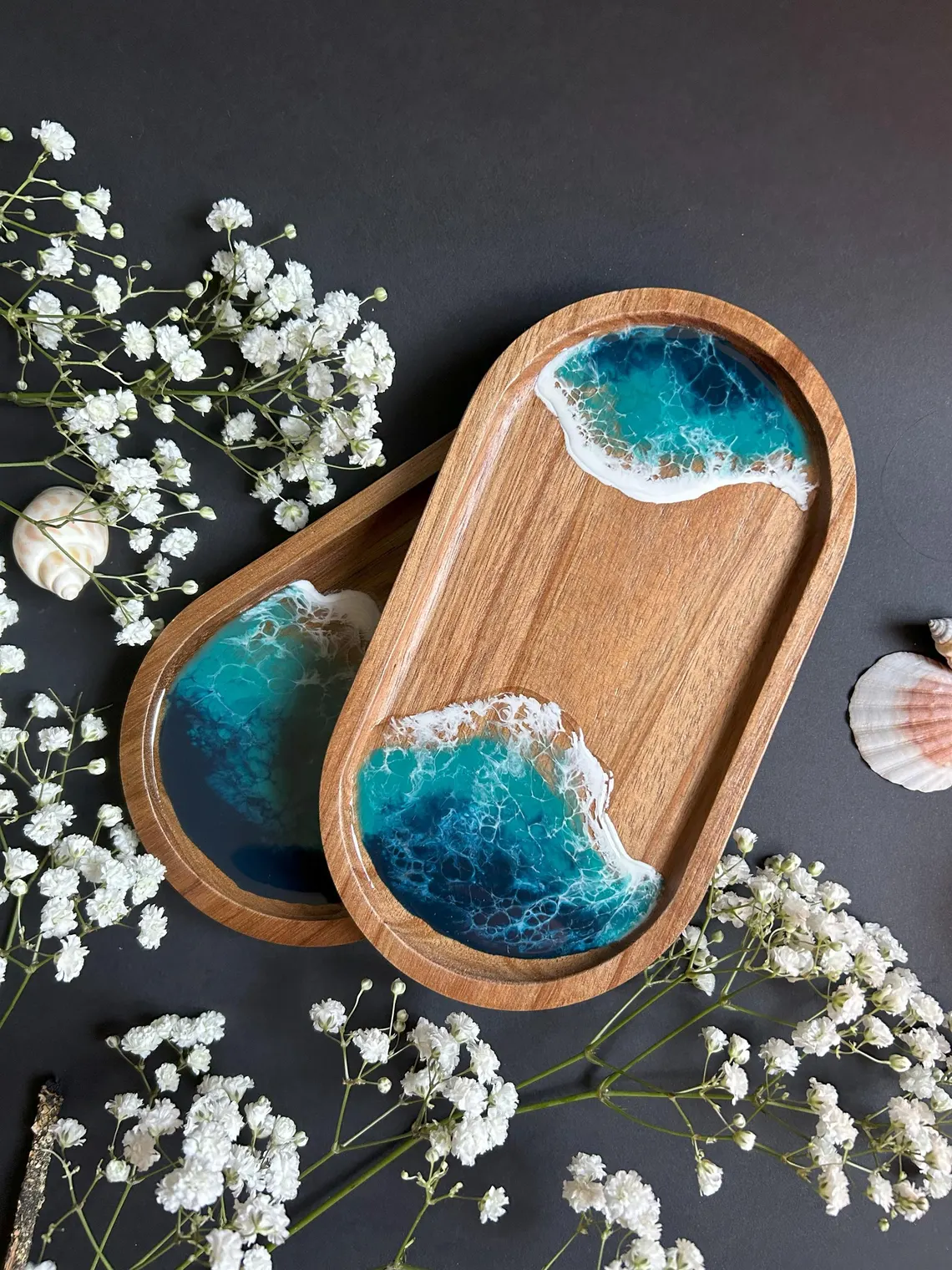 Handmade Wooden Ocean Resin Tray | Epoxy Resin Serving & Decorative Tray