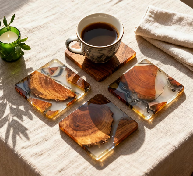 Wooden and Resin Coaster Set – Heat Resistant (4pcs)